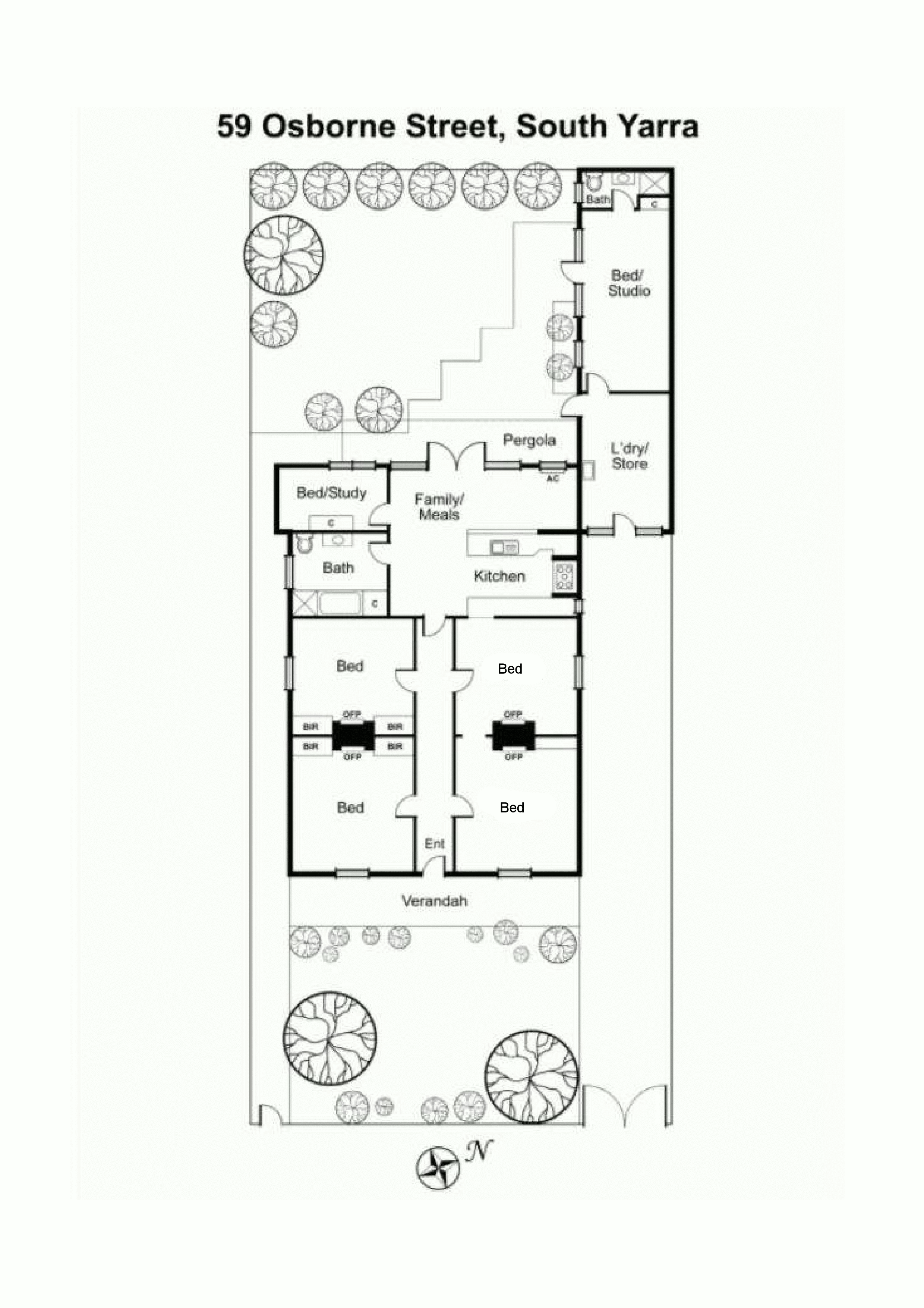There is a large open plan kitchen with meals area flowing onto a beautifully landscaped West facing and private back garden with flourishing wisteria creepers overhanging the pergola area and a fantastic feature Jacaranda tree. The deep side driveway, which provides off-street parking, leads to a laundry and garden workshop followed by a separate room with an ensuite suitable for use as a bedroom or studio/office.