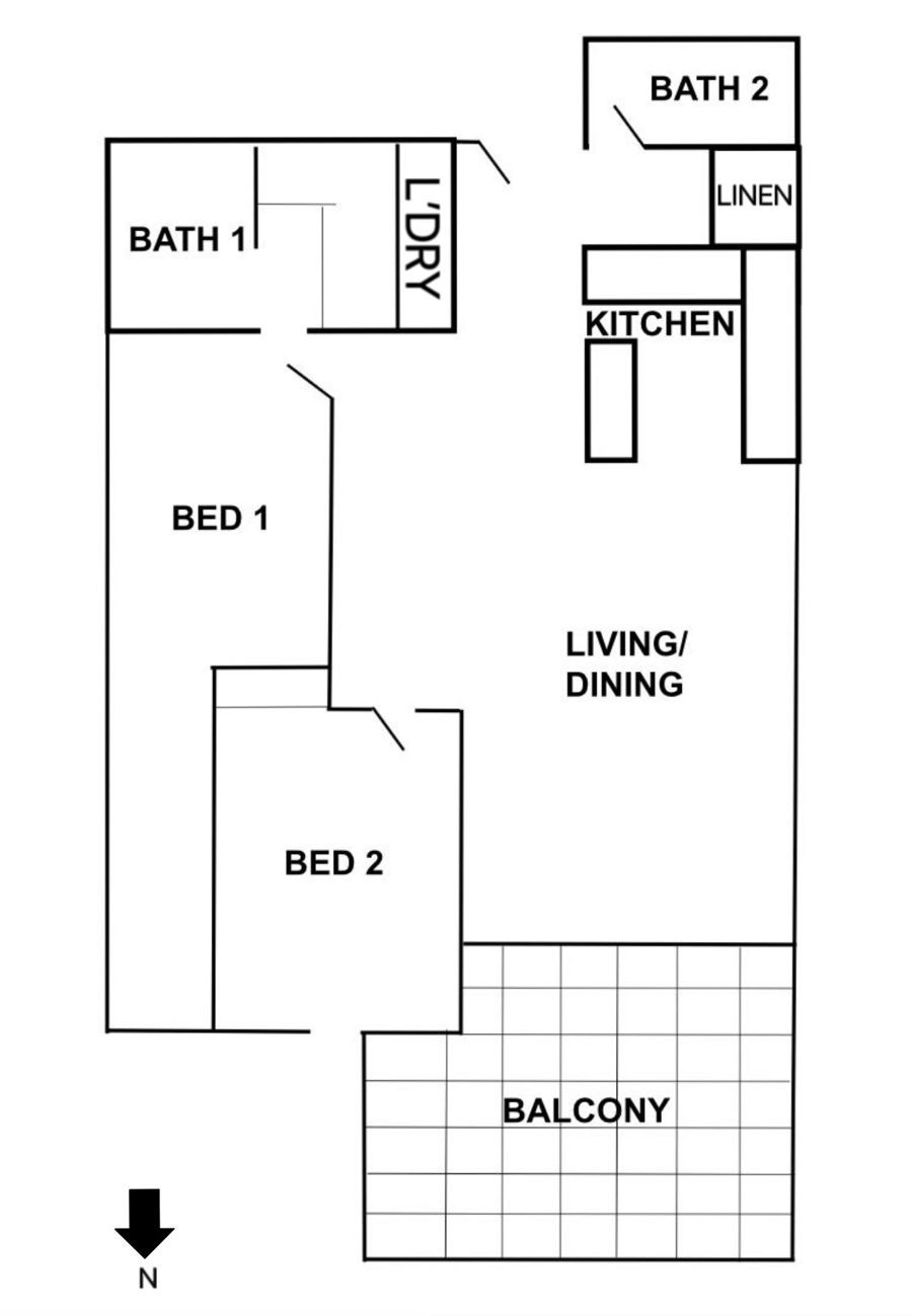 North facing. Internal area 88.6sqm + 10.5sqm Balcony.